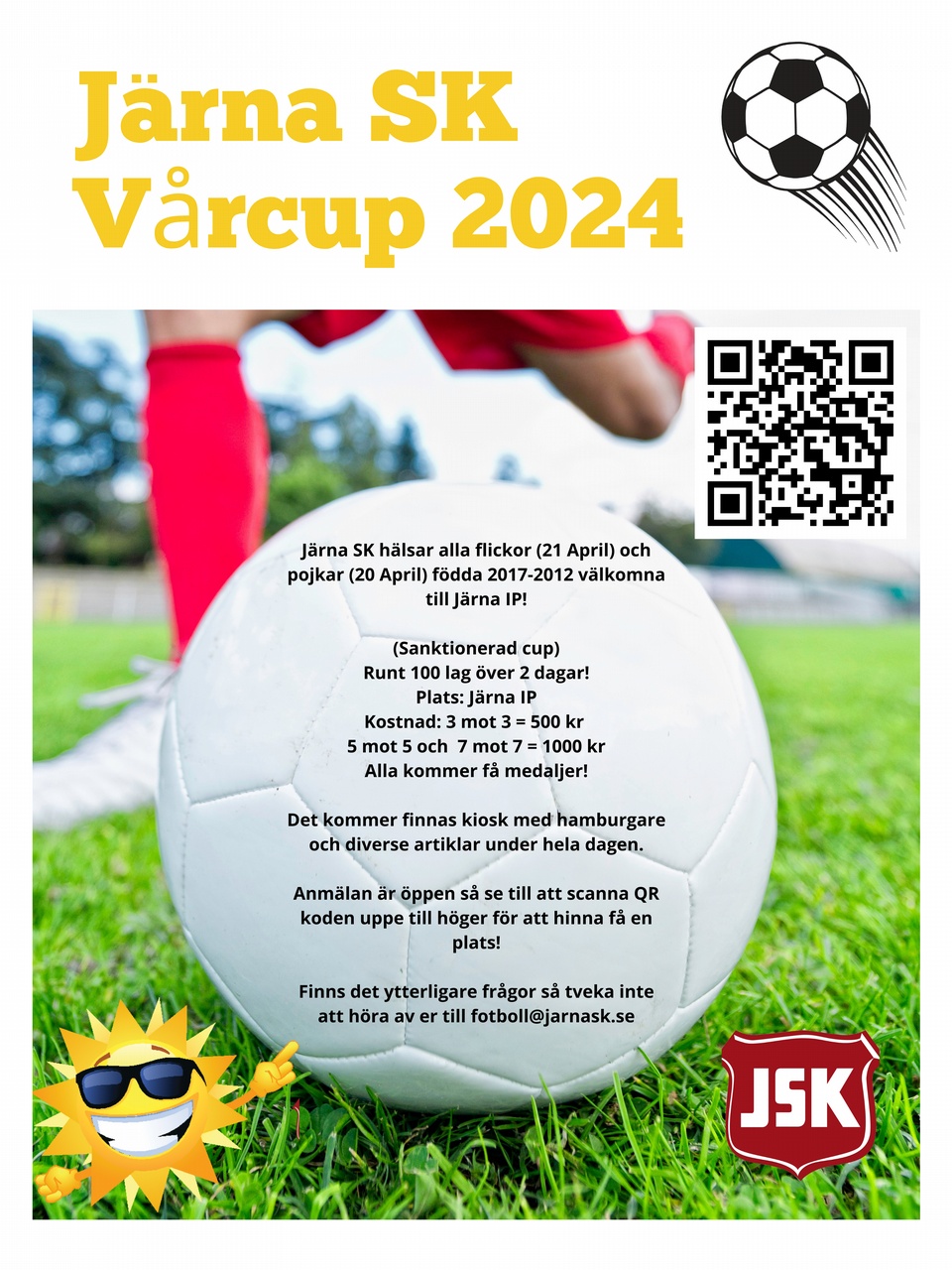 Med förutsättningarna och drivet som finns hos alla våra ideella ledare i JSK så har vi under de senaste 2 åren lyckats ha en uppskattad vårcup i Järna. Detta är något som vi vill fortsätta bygga på från fotbollens håll och satsningen för våren 2024 är att vi ska försöka komma upp till 100 lag som är med på cupen över 2 dagar.