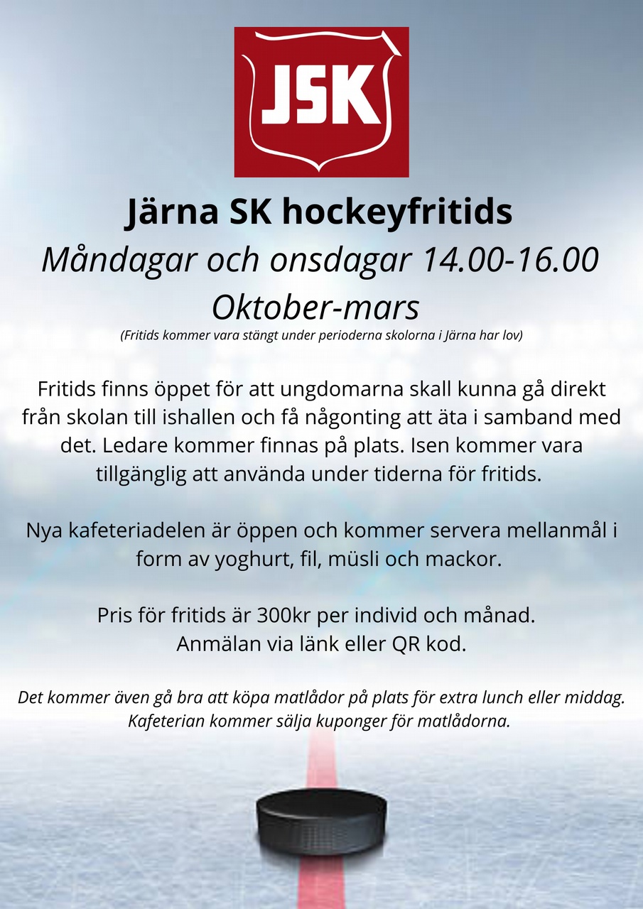 Fritids finns öppet för att ungdomarna skall kunna gå direkt från skolan till ishallen och få någonting att äta i samband med det. Ledare kommer finnas på plats. Isen kommer vara tillgänglig att använda under tiderna för fritids.